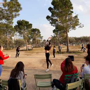 W czwartek uczniowie wszystkich krajów partnerskich brali udział w warsztatach na temat wykorzystania technologii w pracy. Po zajęciach wspólnie grali w tradycyjną grecką grę keramidakia, która bardzo się wszystkim podobała. W tym czasie nauczyciele omawiali cele i dalsze działania projektowe. Popołudniu wszyscy udaliśmy się na piknik do przepięknego i bardzo nowoczesnego centrum kulturalnego Stavros Niarchos Foundation w Atenach. Po centrum oprowadziła nasz angielskojęzyczna przewodniczka, która opowiedziała nam ciekawą historię jego powstania (ufundował ją w całości bogaty armator Stavros Niarchos) oraz o tym, jak ekologiczny jest to budynek (w lecie 100% zapotrzebowania na prąd pokrywają znajdujące się na dachu panele słoneczne), zwiedziliśmy też znajdującą się tam Bibliotekę Narodową. Później zjedliśmy lunch w formie pikniku, a następnie weszliśmy na dach budynku, z którego rozciągał się przepiękny widok na Ateny. Potem udaliśmy się do wspaniałych ogrodów Fundacji, pełnych kwitnącej lawendy i tam spędziliśmy czas spacerując i grając w siatkówkę.