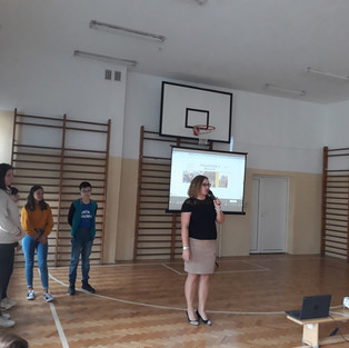 09 października 2019 w auli odbyło się kolejne spotkanie informacyjne na temat prowadzonego w szkole projektu "Innowacja = Motywacja". Koordynatorka projektu Anna Gołyga rozmawiała z uczniami na temat prowadzonych w naszej szkole działań projektowych. Następnie uczniowie klas VIb i VIIIb, którzy we wrześniu pojechali do szkoły partnerskiej w Sveti Jurij na Słowenii, przedstawili przygotowane przez siebie prezentacje z pobytu w szkole słoweńskiej - każdy z uczniów przygotował relację z innego dnia, wykorzystując programy Genial.ly oraz Power Point. Później odpowiadali na pytania innych uczniów, których zainteresowanie uczniów było ogromne - pytali o pogodę na Słowenii, o jedzenie, o to, jak wygląda szkoła, jaki jest system oceniania, interesował ich język i kultura słoweńska. Spotkanie wzbudziło wiele emocji i zachęciło uczniów do aktywniejszego udziału w projekcie.